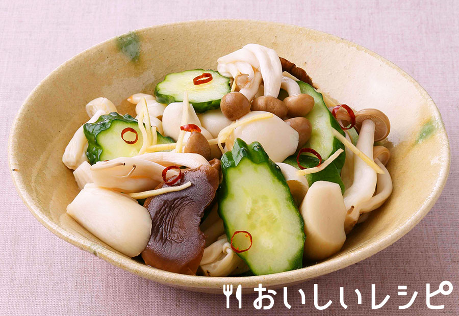 - きゅうりとひらたけの浅漬けジューシーでうま味たっぷりのひらたけと旬のきゅうりで、おいしい一皿!