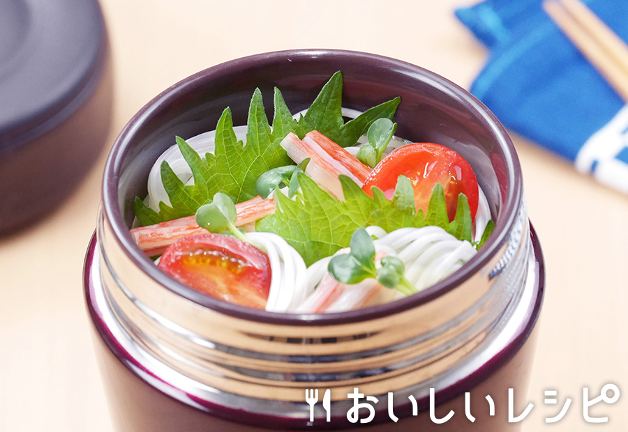 - 冷たい麺弁当 サラダそうめんスープジャーと「プチッとうどん」で冷製ランチ! 冷たいそうめんなら、暑い夏でもさらっと食べられます!