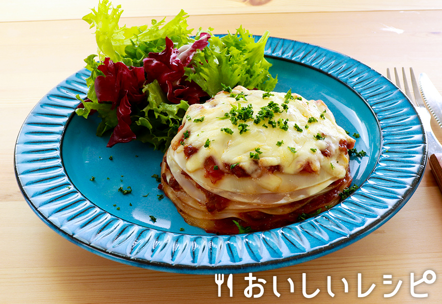 - 餃子ラザニア餃子の皮を使ったお手軽ラザニア。もちっとした食感に濃厚な味わいがたまらない!