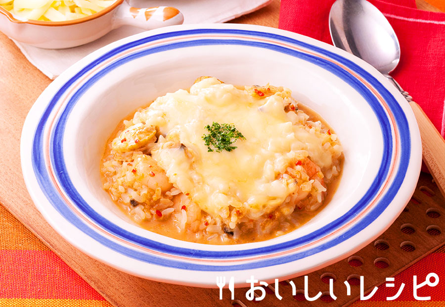 - シーフードリゾットさっと煮込むだけで本格派の味わい! にんにくの香りが食欲をそそります。