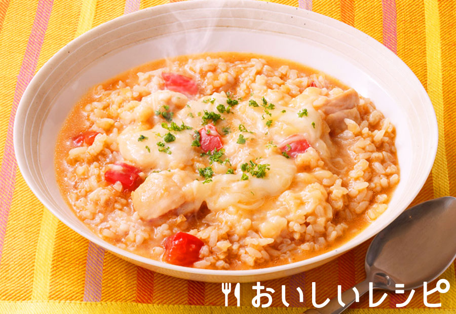 - イタリアン風キムチリゾットトマト&チーズでイタリアンに大変身! お鍋のシメや軽食にも!