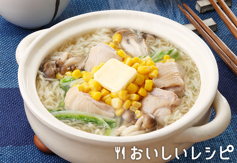 - 塩バターラーメン鍋あっさり塩味のスープに、バターのコクをプラス。人気のラーメン鍋。