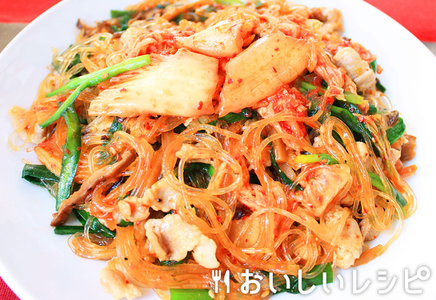 - 豚キムチチャプチェキムチを加えたピリ辛のチャプチェ。ごはんやお酒のおつまみにピッタリ!