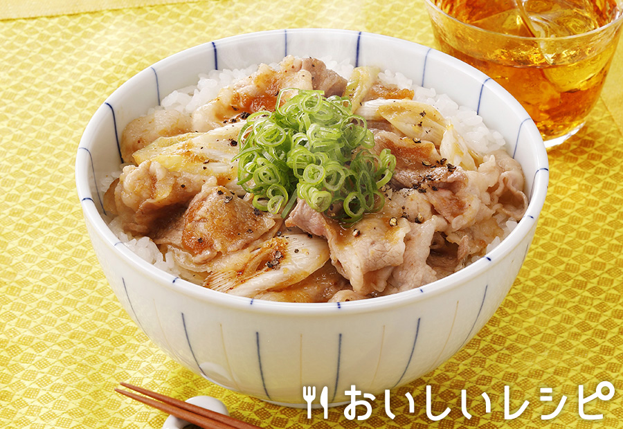 - さっぱり豚丼豚肉と長ねぎをサッと炒めてごはんにのせるだけ! お弁当にもピッタリ!