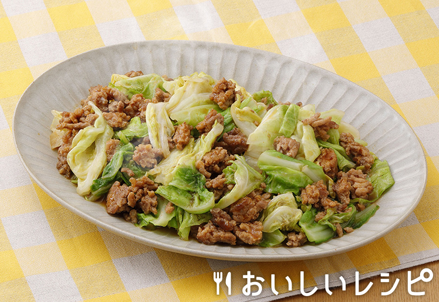 - フライパンに油を熱し、挽き肉を炒め、キャベツを加えて炒め合わせ、「黄金の味」で味付けして、出来あがりです。